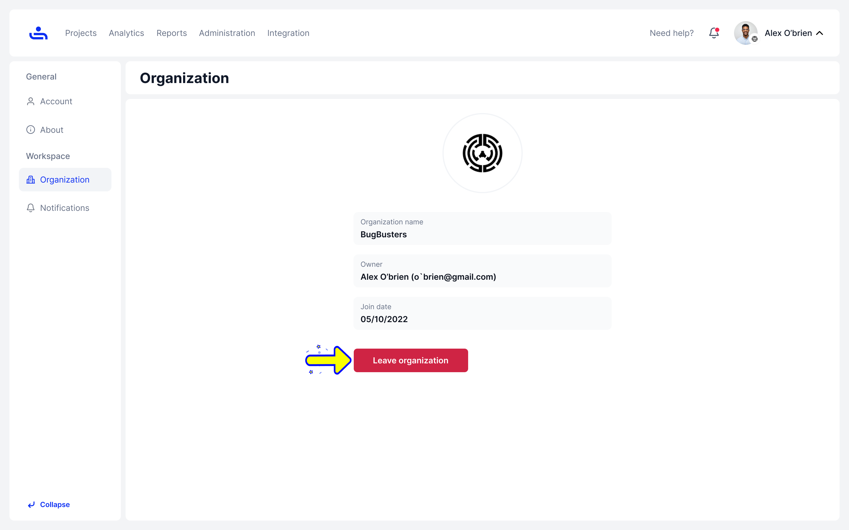 <summary>Step 2: Click "Leave Organization"</summary>