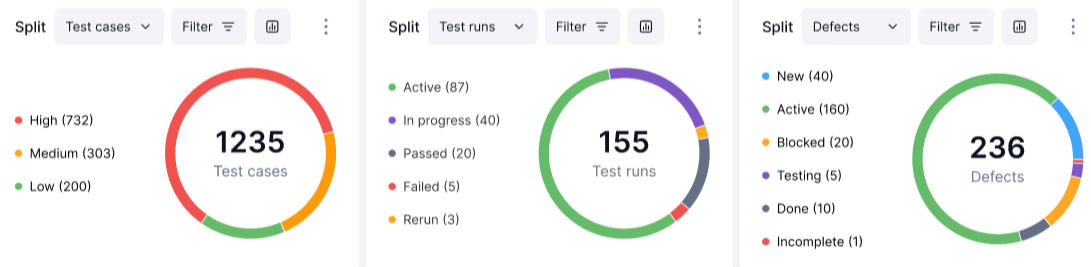 <figure><img src="https://1326643208-files.gitbook.io/~/files/v0/b/gitbook-x-prod.appspot.com/o/spaces%2FnpMhTPhBTwVaw7bZVBjY%2Fuploads%2Fgit-blob-04053365be6d86af5ab45184259ace75c287bdd9%2FDonut%20Chart_03.PNG?alt=media" alt=""><figcaption><p>An example Donut chart from a Project with various filters applied to show different data.</p></figcaption></figure>