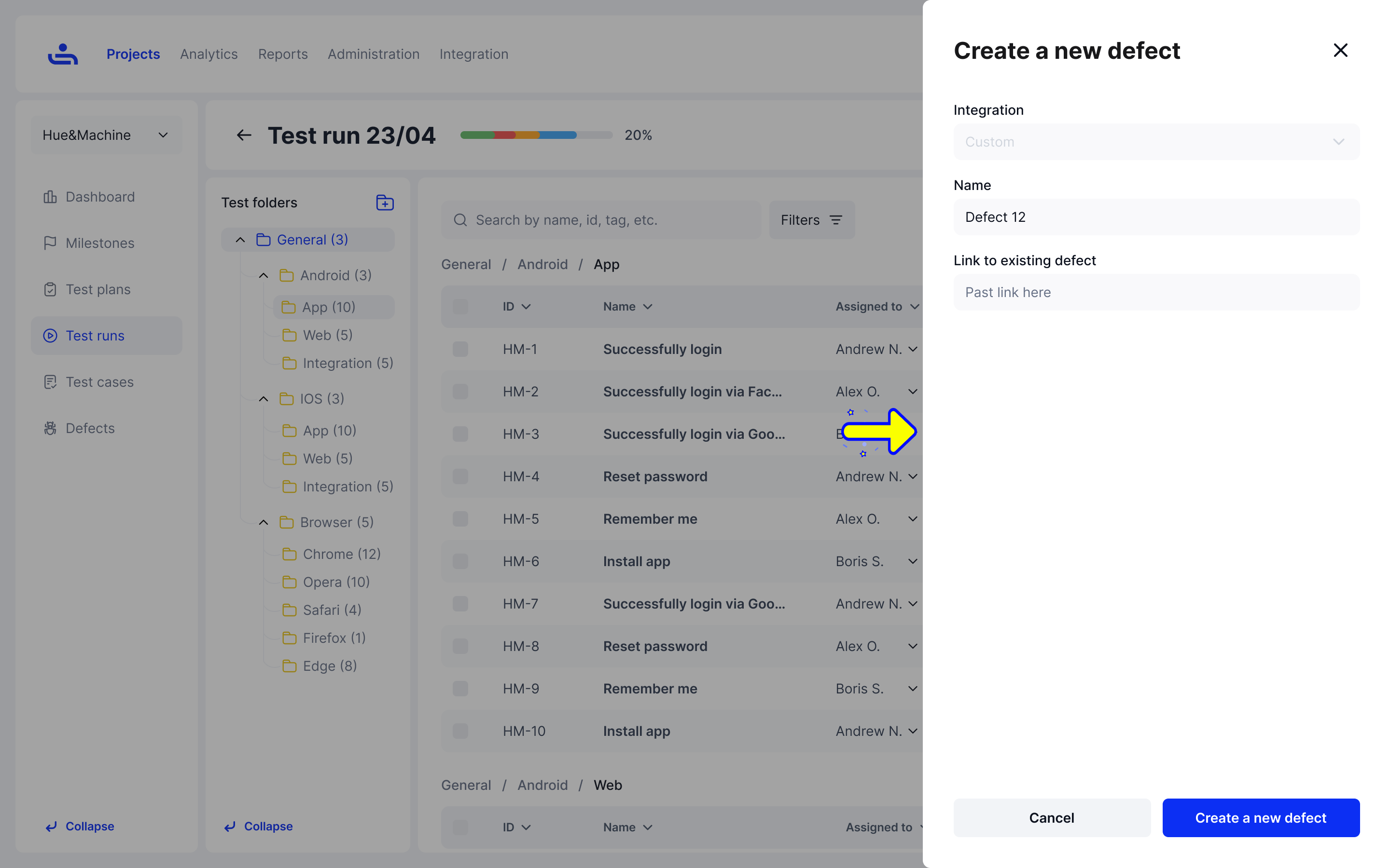 <figure><img src="https://1326643208-files.gitbook.io/~/files/v0/b/gitbook-x-prod.appspot.com/o/spaces%2FnpMhTPhBTwVaw7bZVBjY%2Fuploads%2Fgit-blob-fd39b9ee4eac2d1c7d7c953cae530132b465d94b%2FTest%20runs%20-%20View%20test%20run-1.png?alt=media" alt=""><figcaption><p>A notification will appear asking if you want to create a new Defect.</p></figcaption></figure>