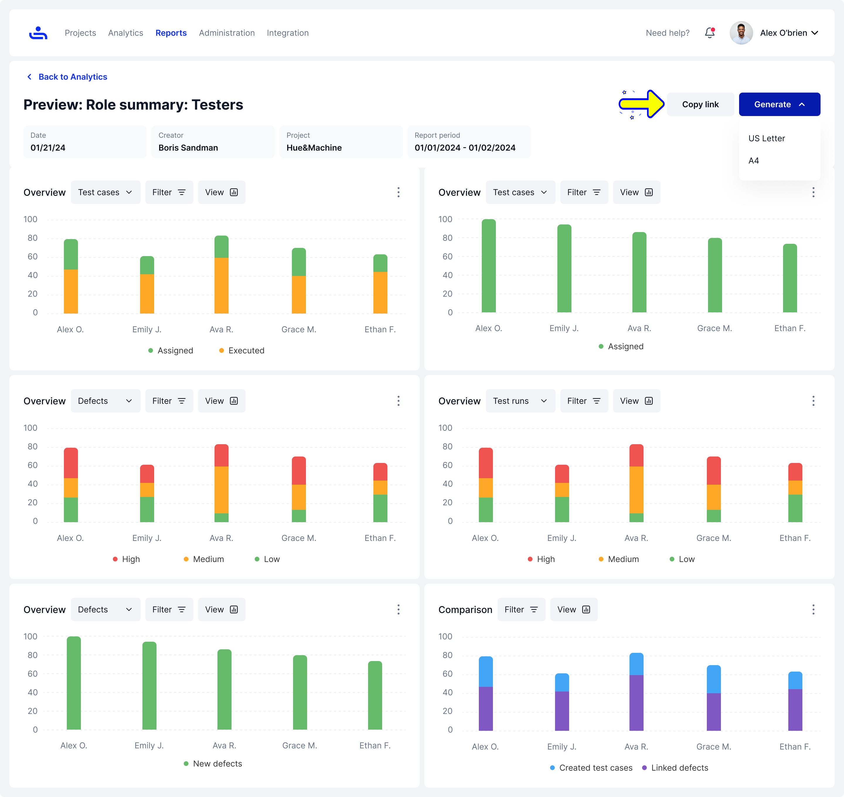 Click on the generate button to generate the Report, you can format it in US Letter or A4 PDF formats.\